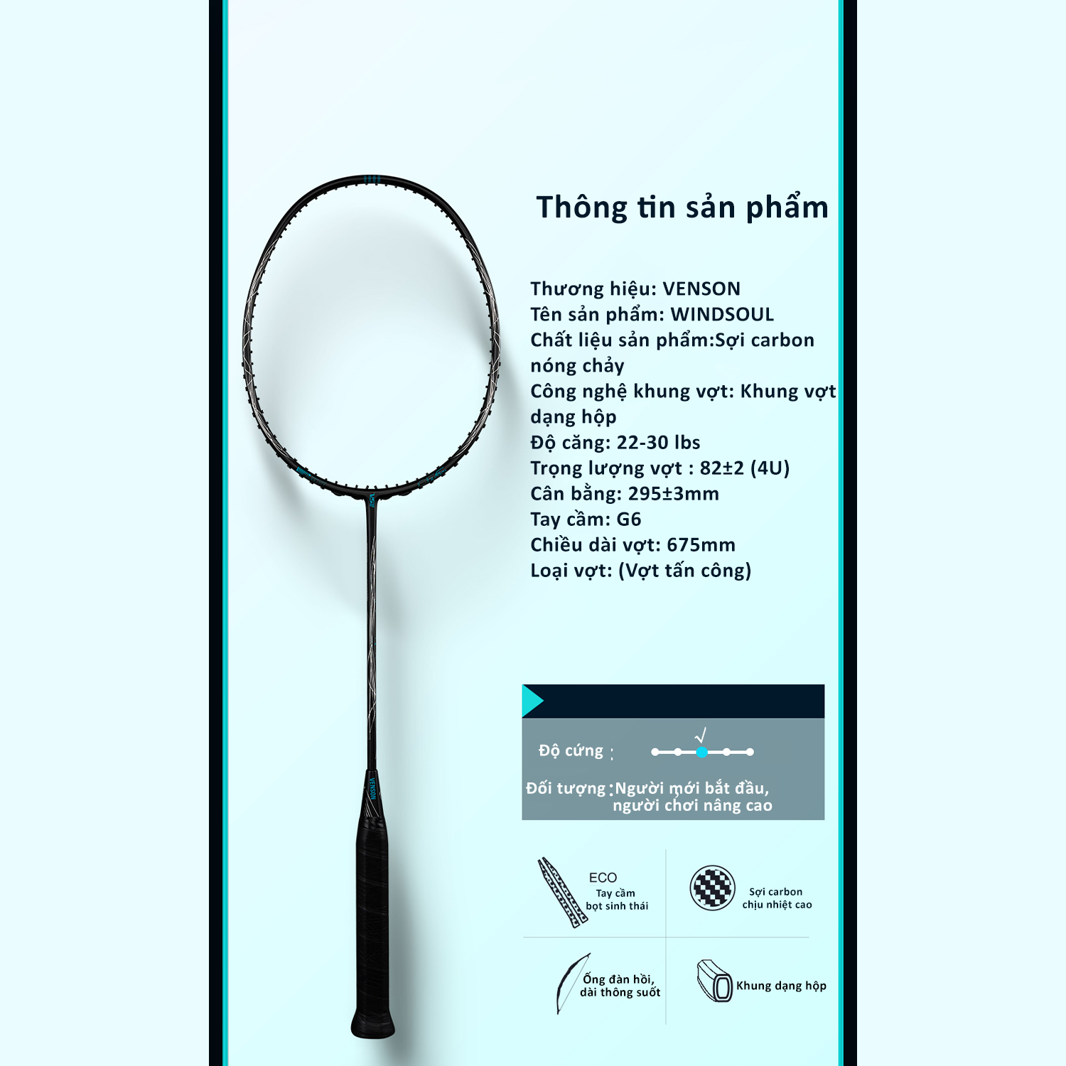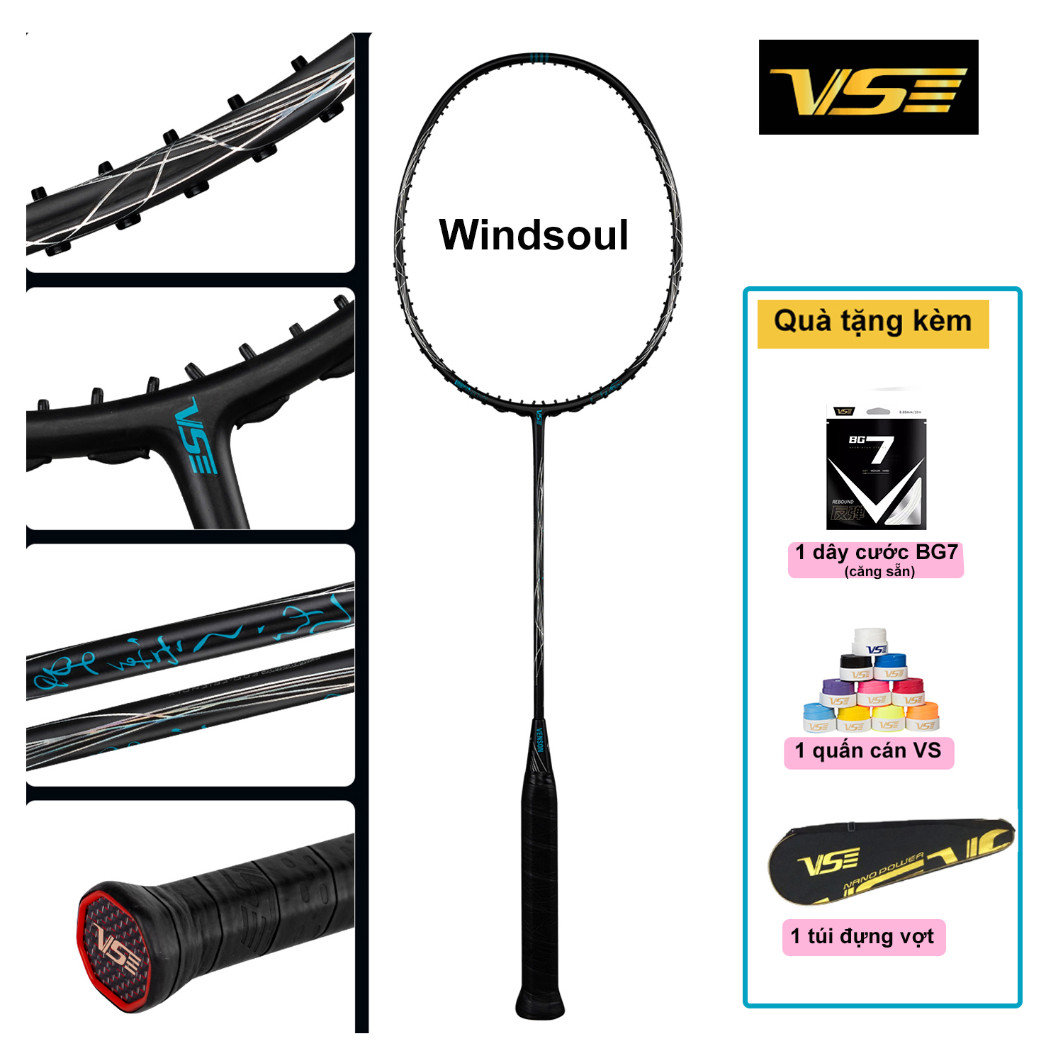 Công nghệ tích hợp trên Vợt cầu lông VS Windsoul – Đen bạc 2024 (Nội địa Trung)